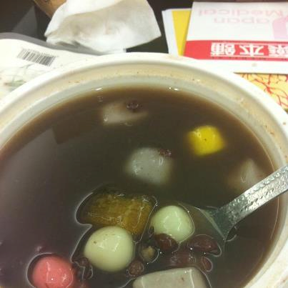 五顏六色的配料把紅豆湯